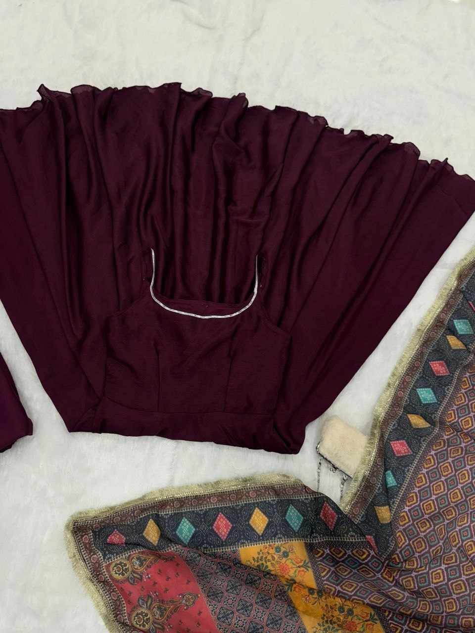 Anarkali – Pure Chinon Anarkali suit featuring a huge flair for a graceful, flowy silhouette