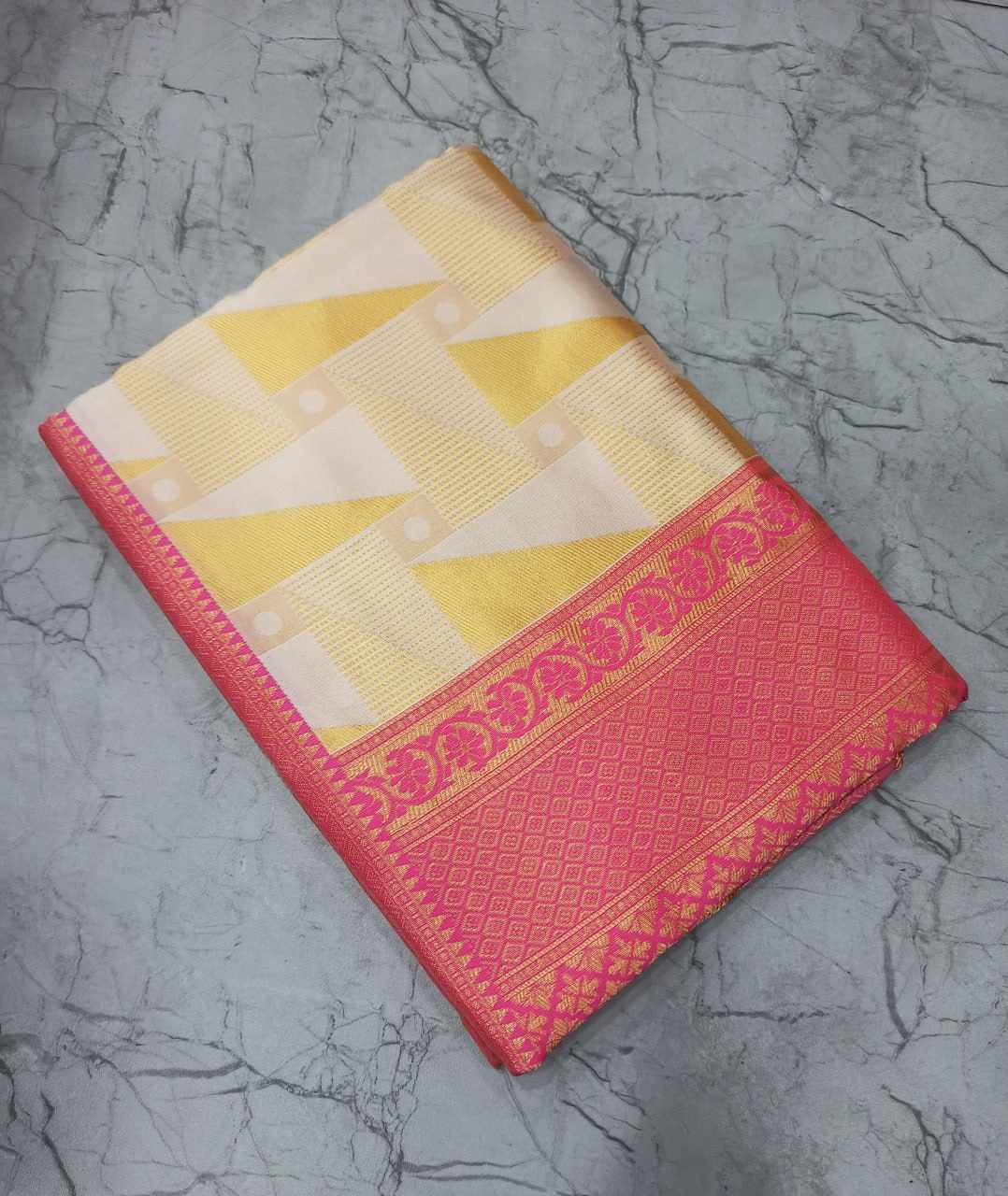 The saree features a rich and beautifully woven pallu that adds a royal touch. Intricate jacquard work all over the saree enhances its elegance, making it perfect for festive occasions, weddings, and special gatherings.