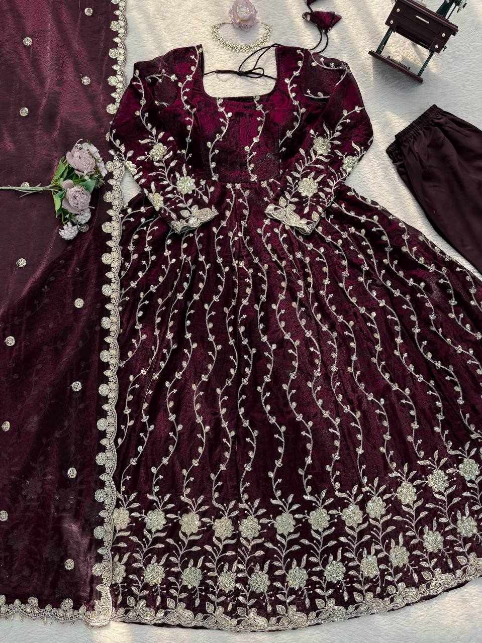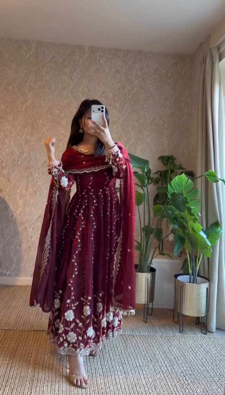 | Name : | RTC 5953 New Beautifull Party Wear Maroon Gown |