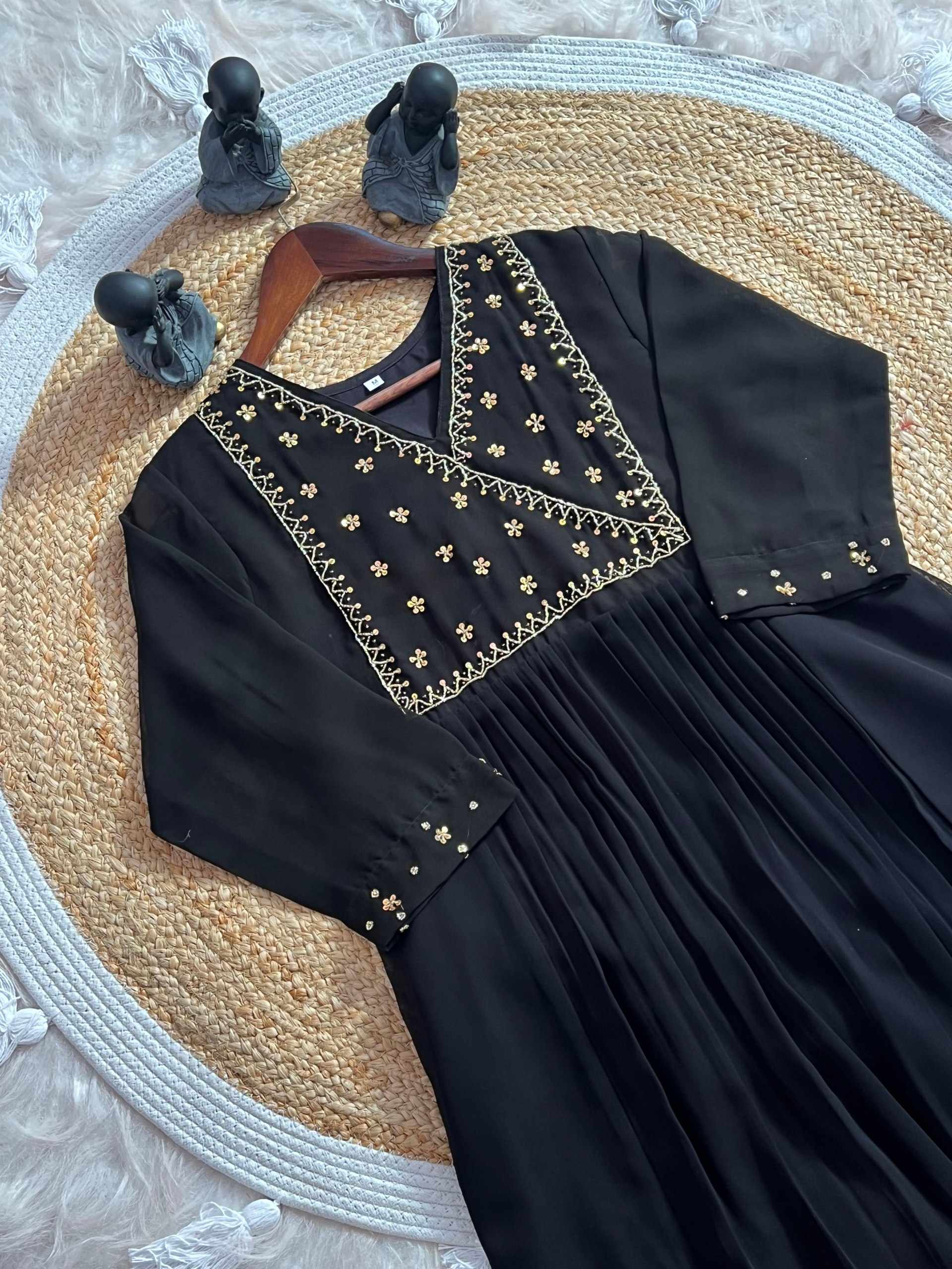WM12 BLACK BLOOMING GEORGETTE BEAUTIFUL HANDWORK KURTI